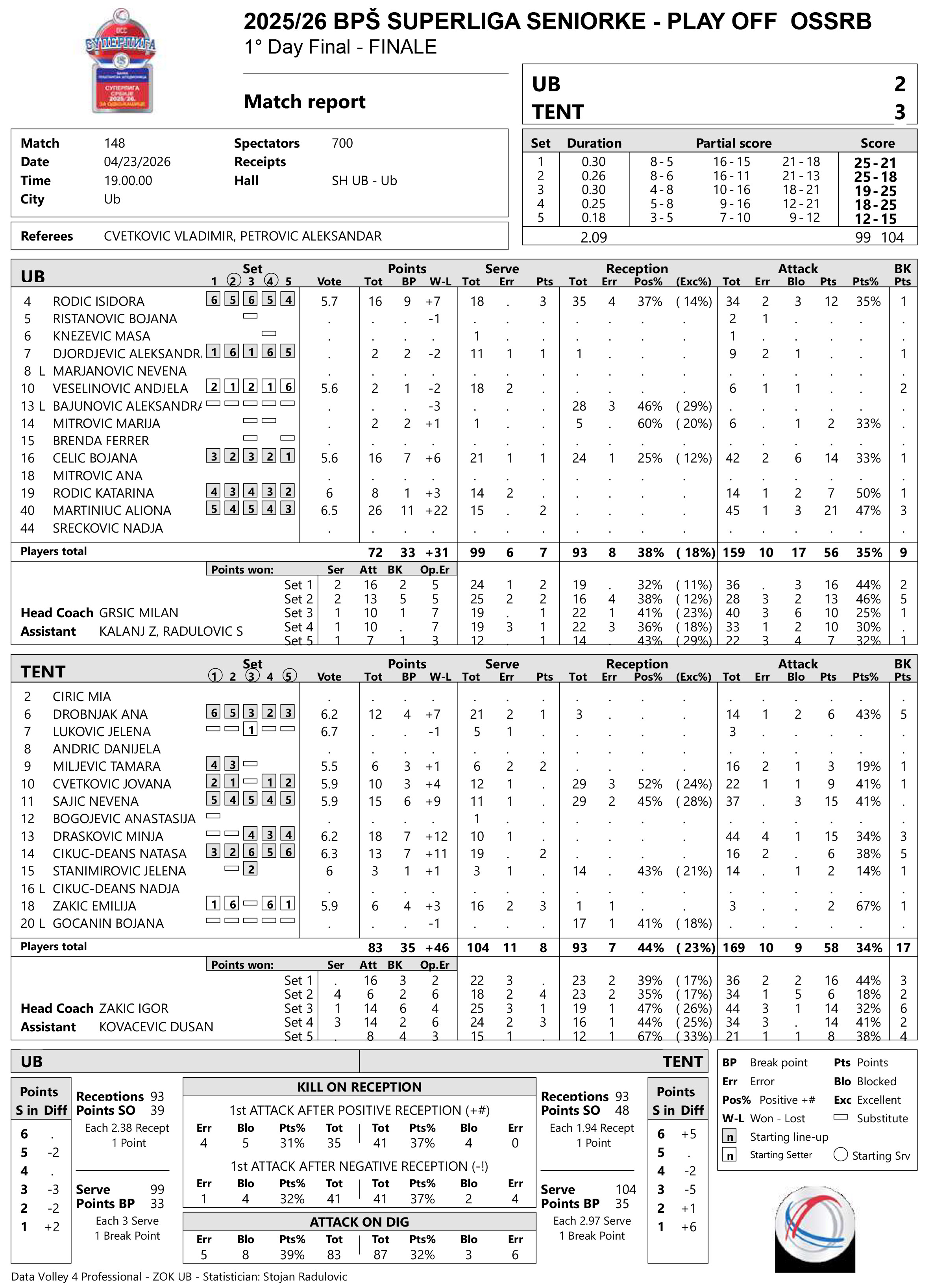 Finalisti 82. nacionalnog odbojkaškog prvenstva do sada su osvojili po jednu titulu prvaka Srbije i pobednika Banka Poštanska štedionica Superlige. TENT je prvak bio 2020, a Ub 2021.