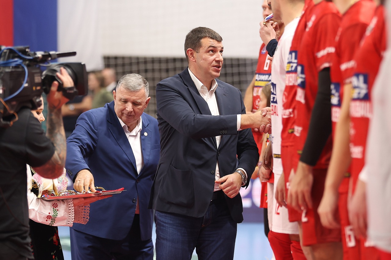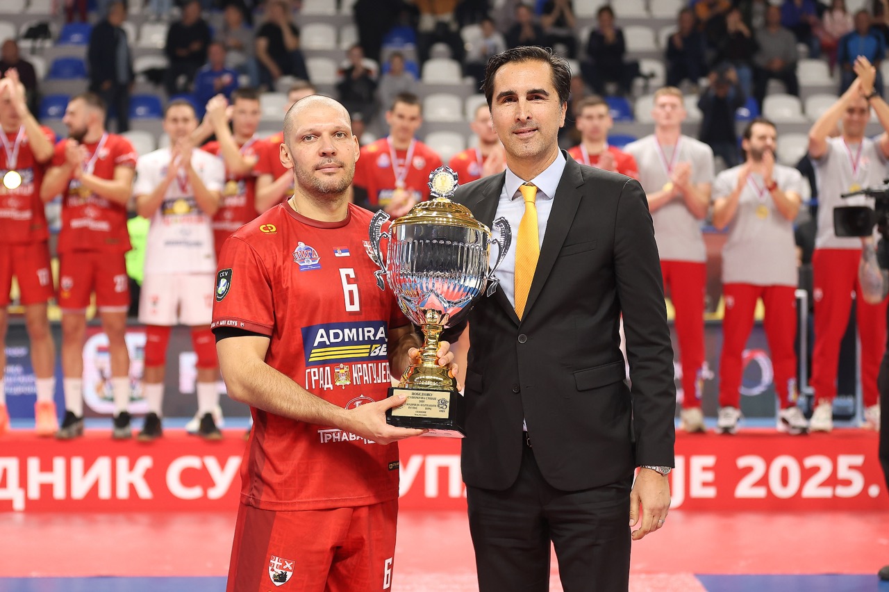 Galerija fotografija sa utakmice Superkupa Srbije u konkurenciji seniora između Radničkog doo iz Kragujevca i Partizana Kopteh, koja je 2. novembra 2025. godine odigrana u Rumi. {os-gal-78}