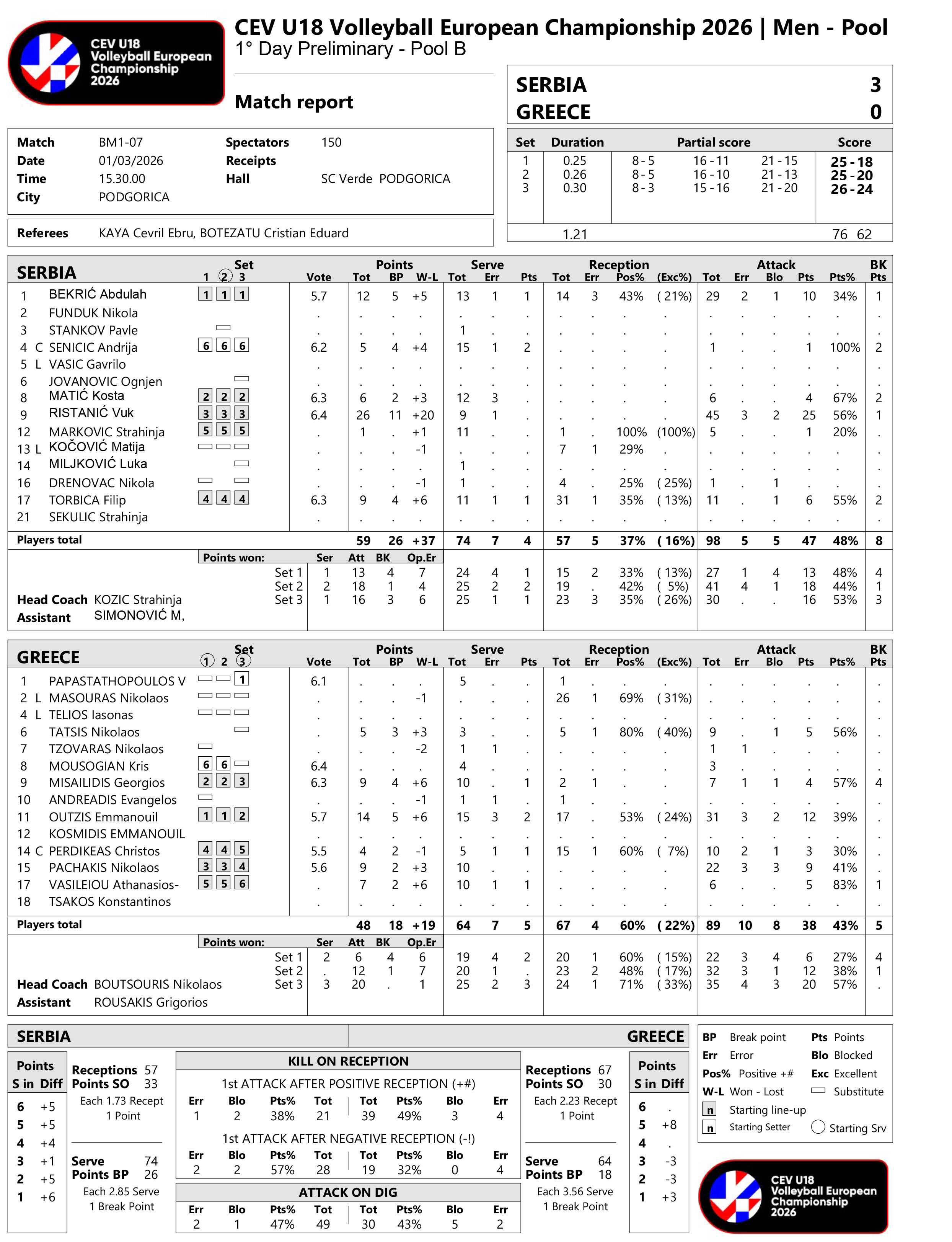 SRBIJA – GRČKA 3:0 (25:18, 25:20, 26:24)