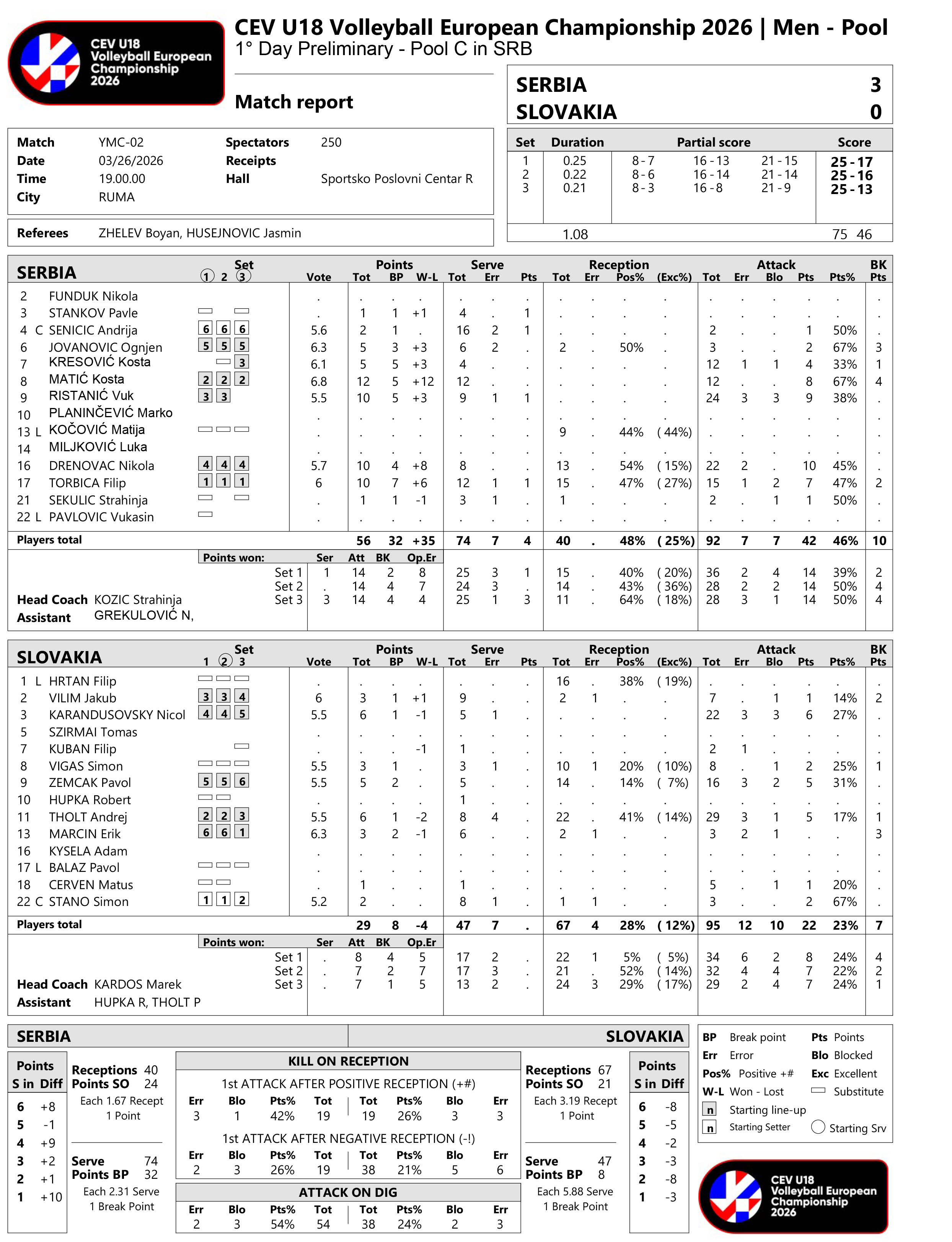 SRBIJA – SLOVAČKA 3:0 (25:17, 25:16, 25:13)