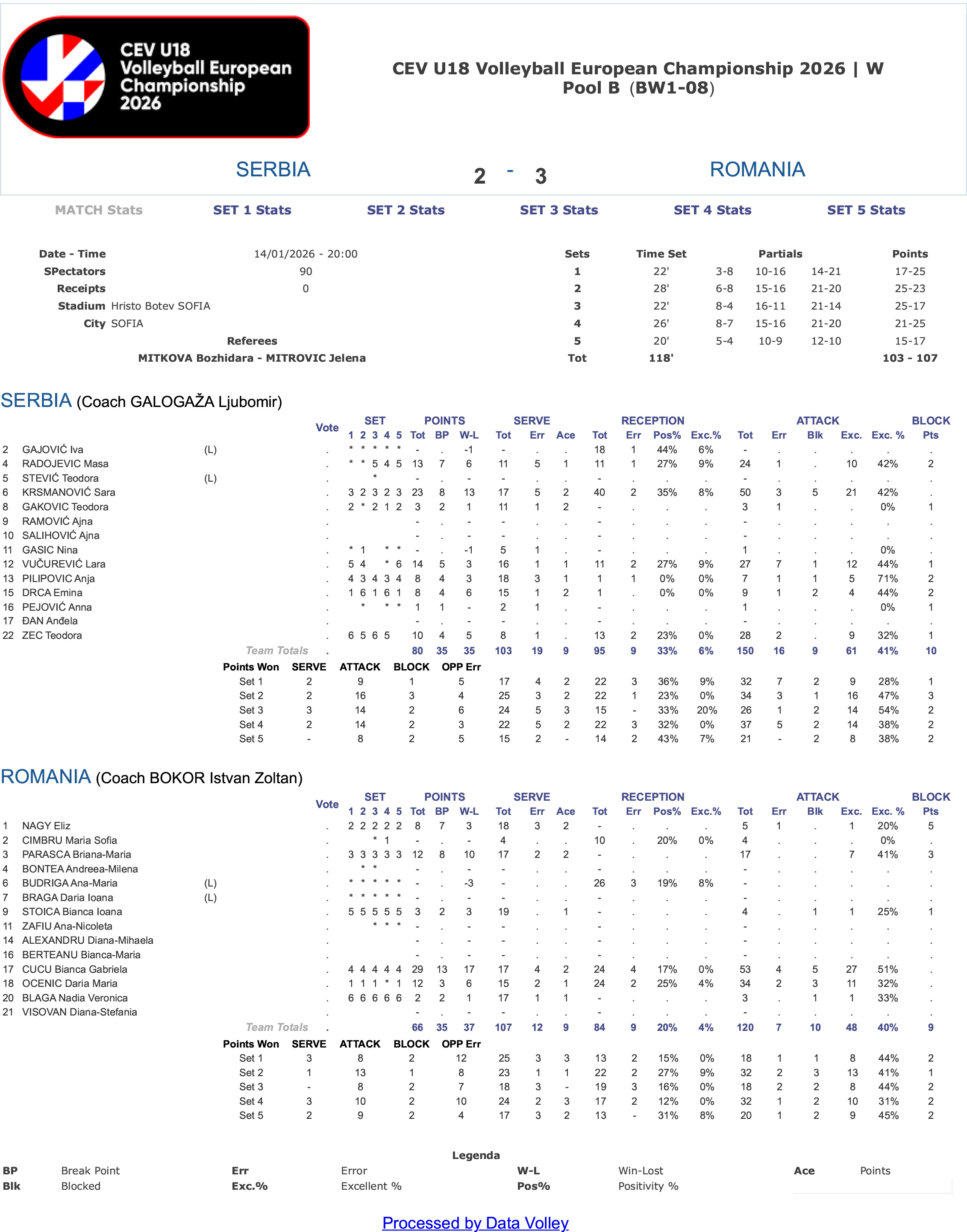SRBIJA – RUMUNIJA 2:3 (17:25, 25:23, 25:17, 21:25, 15:17)