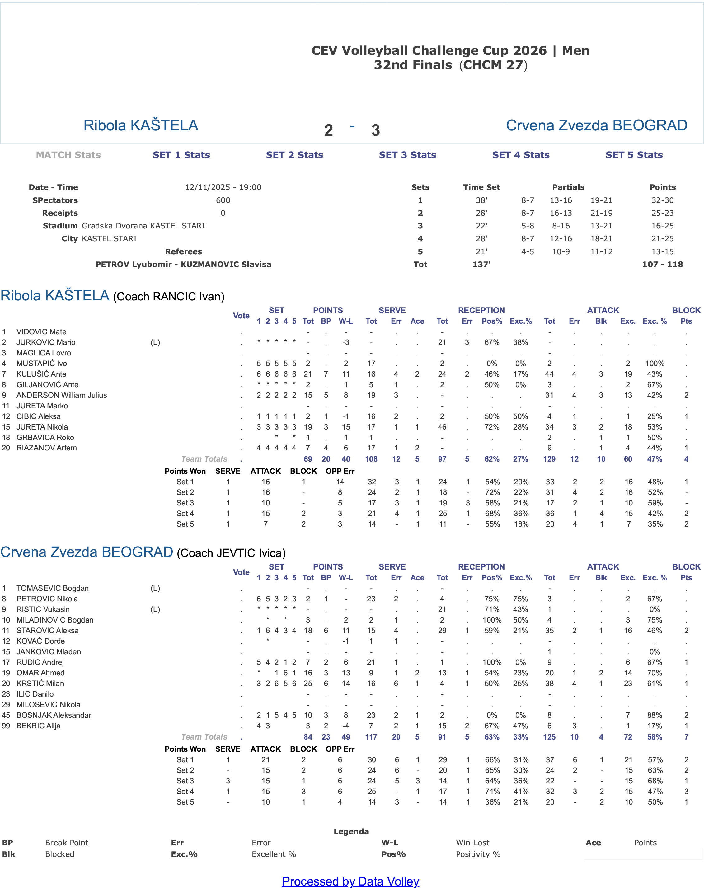 Revanš utakmica će se odigrati u dvorani „Profesor dr Branislav Pokrajac“ (nekadašnja USC „Voždovac“ na Banjici) u četvrtak, 20. novembra od 19.00 časova.