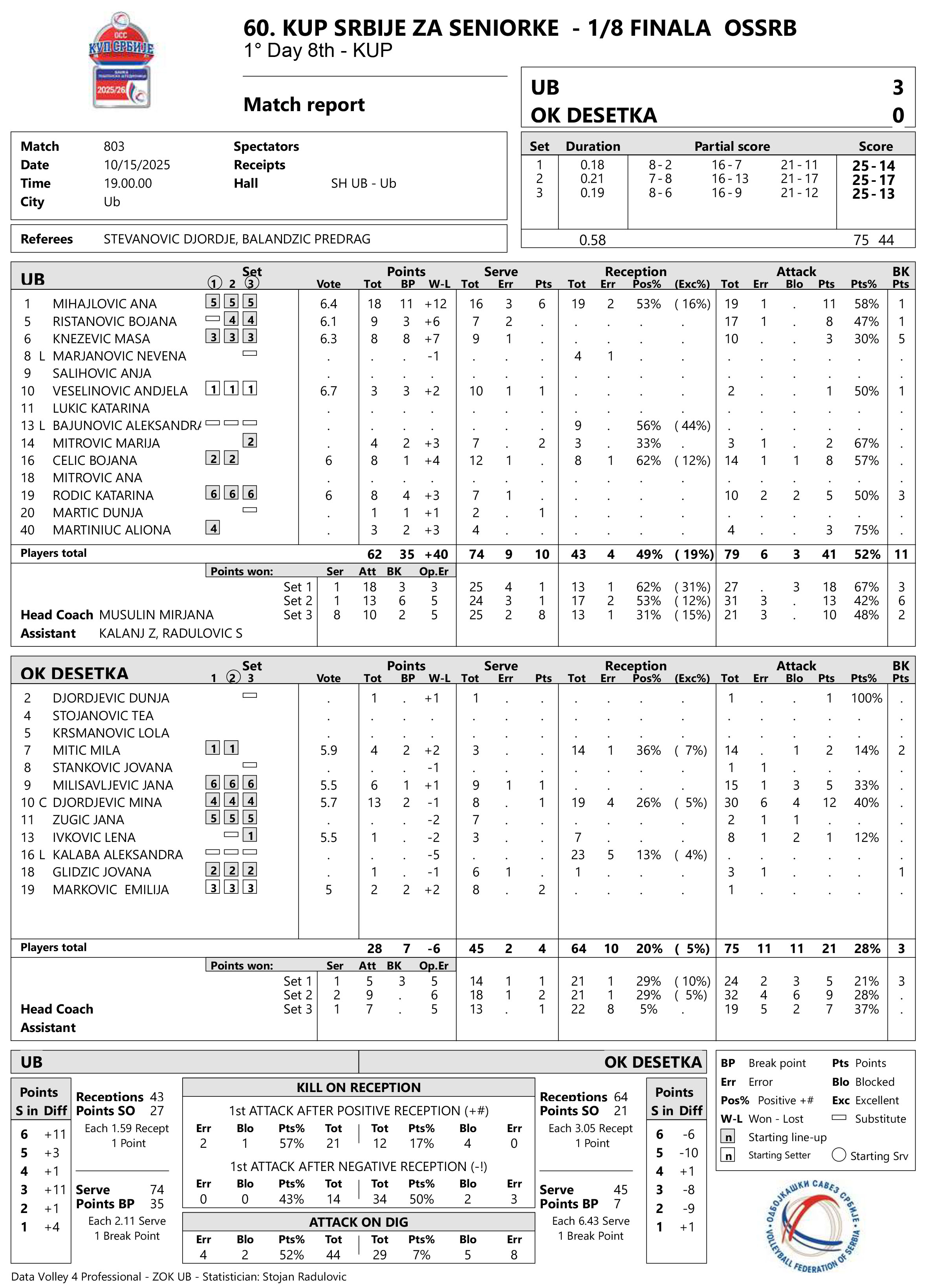UB – DESETKA (NIŠ) 3:0 (25:14, 25:17, 25:13)