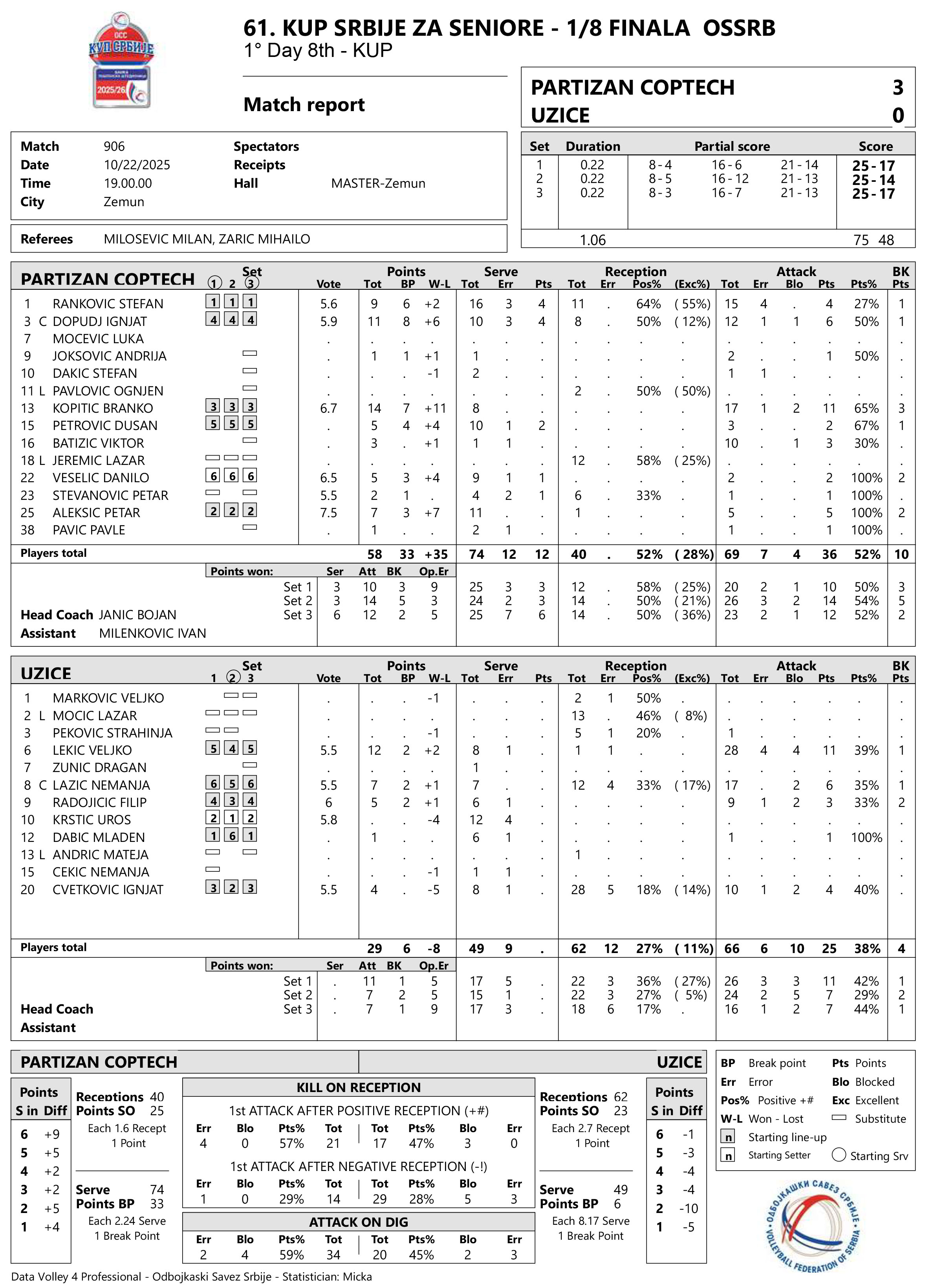 PARTIZAN COPTECH – UŽICE 3:0 (25:17, 25:14, 25:17)
