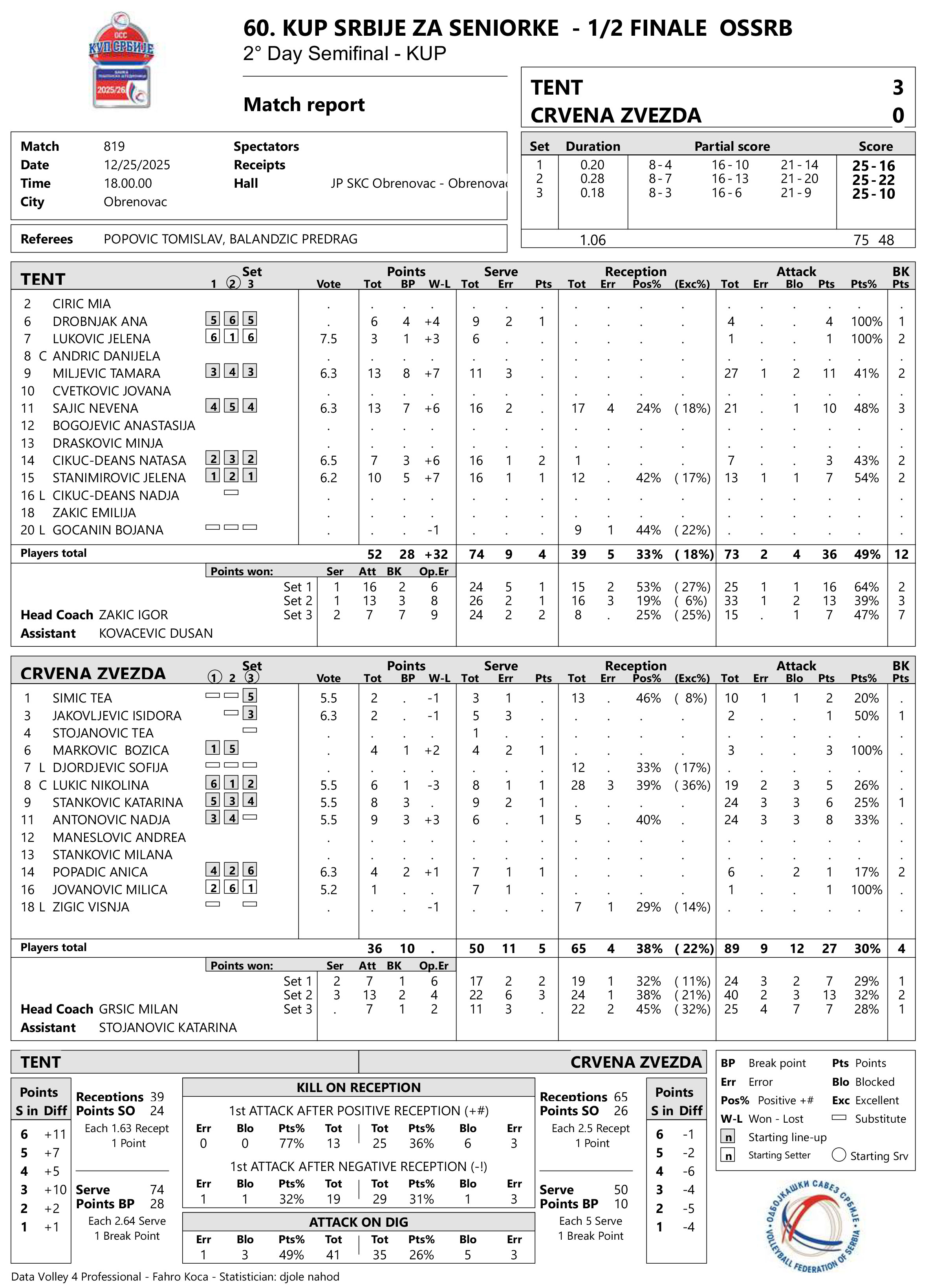 TENT – CRVENA ZVEZDA 3:0 (25:16, 25:22, 25:10)
