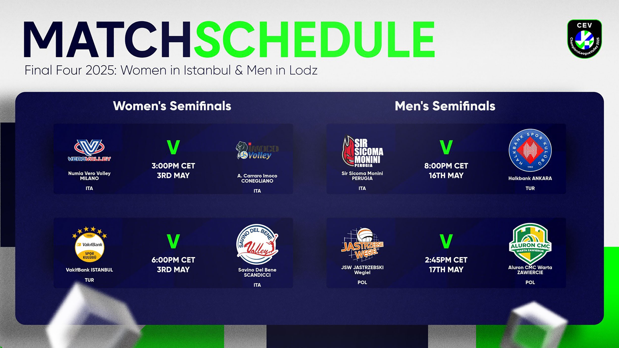 Finalni turnir Lige šampiona 2025. u konkurenciji odbojkaša odigraće se u Atlas areni u Lođu od 16. do 18. maja.