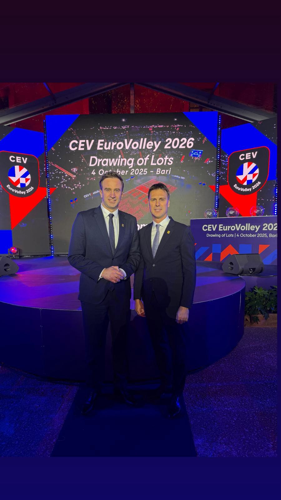 Odbojkaški savez Srbije su na žrebu u Bariju predstavljali Ivan Knežević, generalni sekretar OSS i prvi potpredsednik CEV i Dragutin Ćuk, tehnički direktor OSS i član žirija EP 2026.