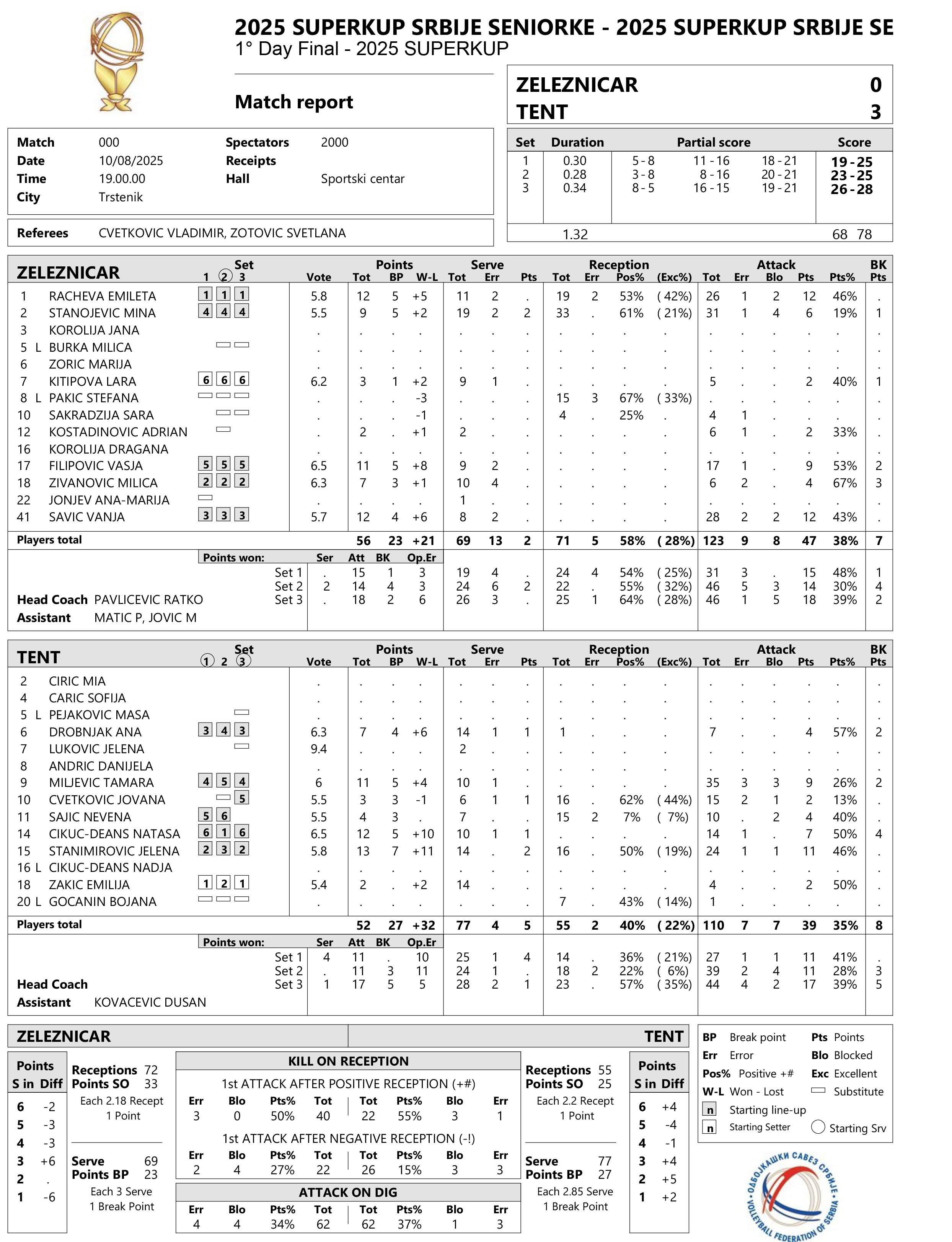 TENT (OBRENOVAC) – ŽELEZNIČAR (LAJKOVAC) 3:0 (25:19, 25:23, 28:26)