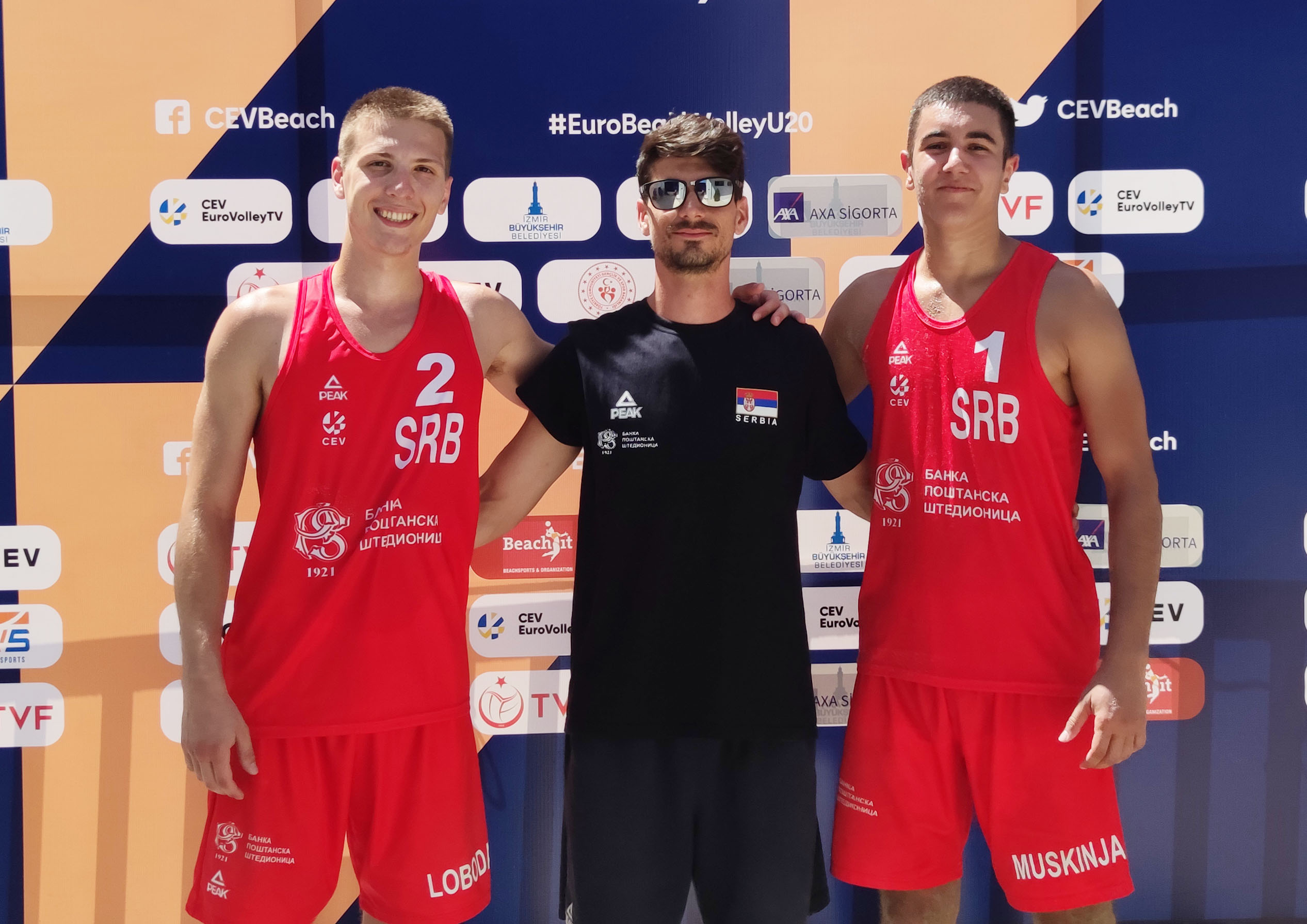 U konkurenciji odbojkaša, u E grupi, Holanđani Verstegen/Ojman su u 2. kolu pobedili srspki par Muškinja/Loboda sa 2:1 (22:24, 21:15, 15:6), da bi u poslednjem, 3. kolu srpski reprezentativci savladali turski par Kurt/Tur sa 2:0 (21:14, 21:14) i plasirali se u razigravanje za plasman u osminu finala, gde će igrati protiv belgijskog para Lenen/Goset sutra od 9.40 časova po našem vremenu.