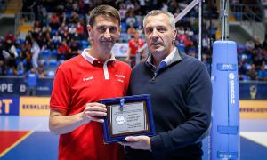 Petar Bogunović, predsednik OSV i potpredsednik OSS, predao je Urošu Muškinji, kapitenu Vojvodine NS seme 2 iz Novog Sada pehar namenjen pobedniku Banka Poštanska štedionica prve B lige 2021/2022.