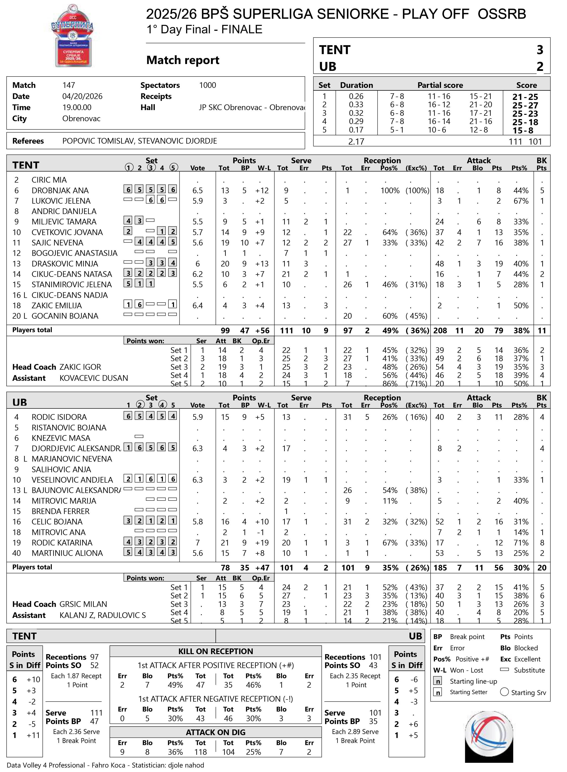 Finalisti 82. nacionalnog odbojkaškog prvenstva do sada su osvojili po jednu titulu prvaka Srbije i pobednika Banka Poštanska štedionica Superlige. TENT je prvak bio 2020, a Ub 2021.
