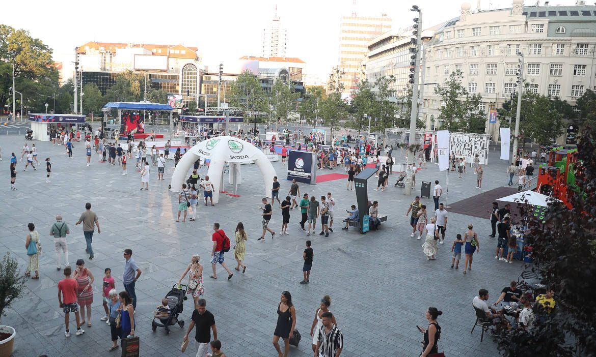 Galerija najlepših fotografija sa Trga republike u Beogradu, gde je 14. avgusta održana promocija Evropskog prvenstva za odbojkašice. {os-gal-15}