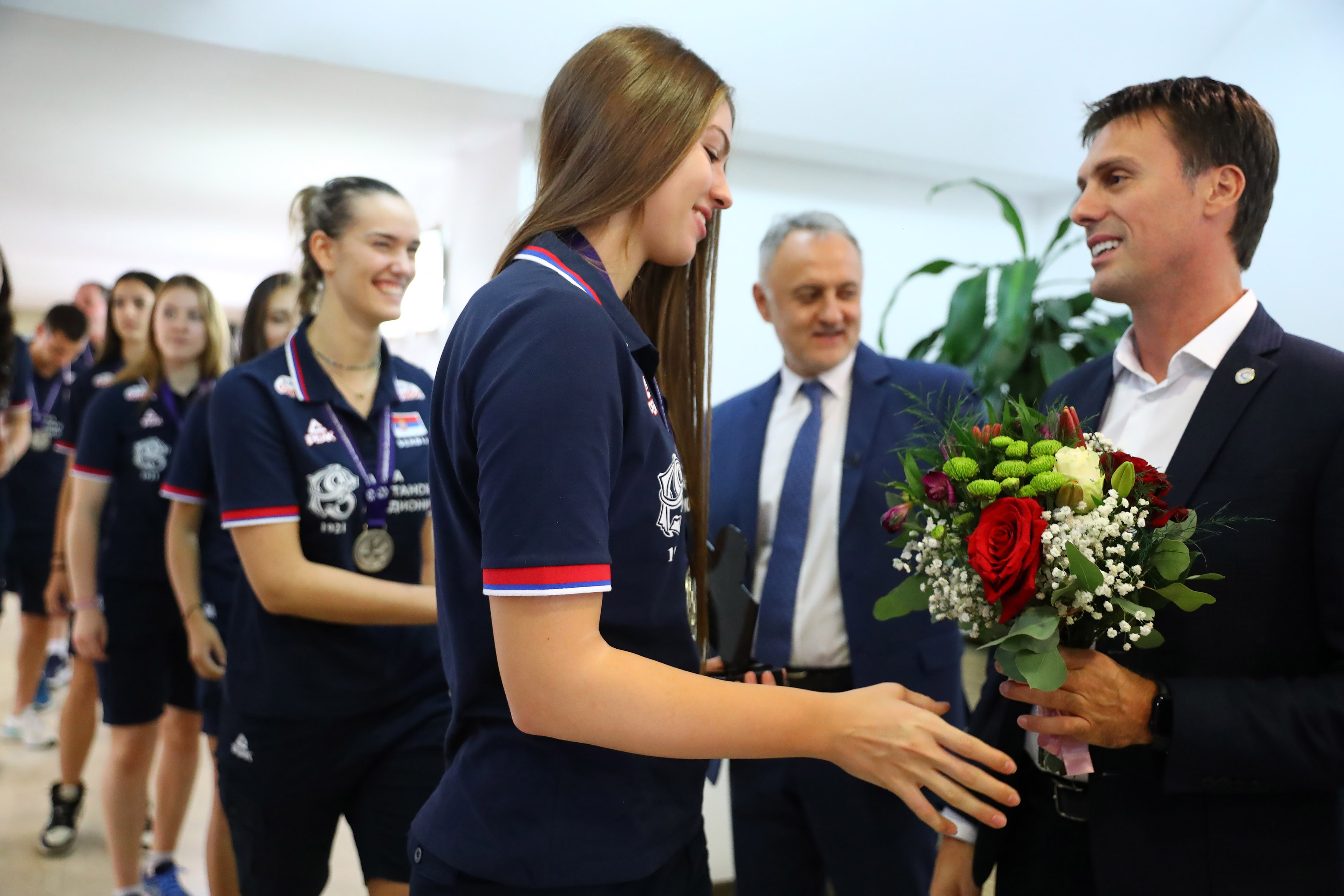 U beogradskom hotelu „M“ im je priređen svečani doček, a pozdravili su ih Zoran Gajić, predsednik OSS, Ivan Knežević, generalni sekretar OSS i Milutin Popović, predsednik OSBIH i Odbojkaškog saveza Republike Srpske.
