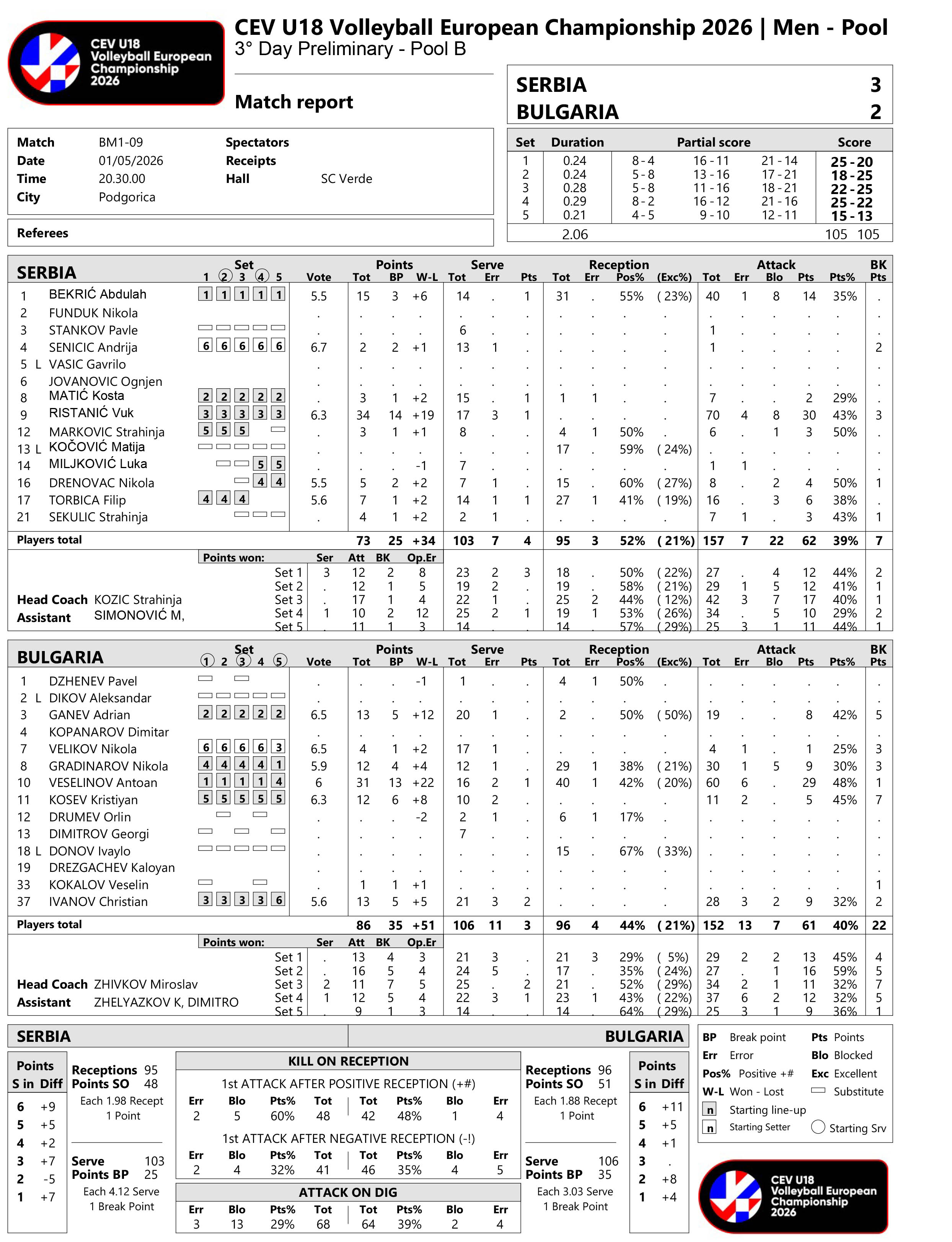 SRBIJA – BUGARSKA 3:2 (25:20, 18:25, 22:25, 25:22, 15:13)