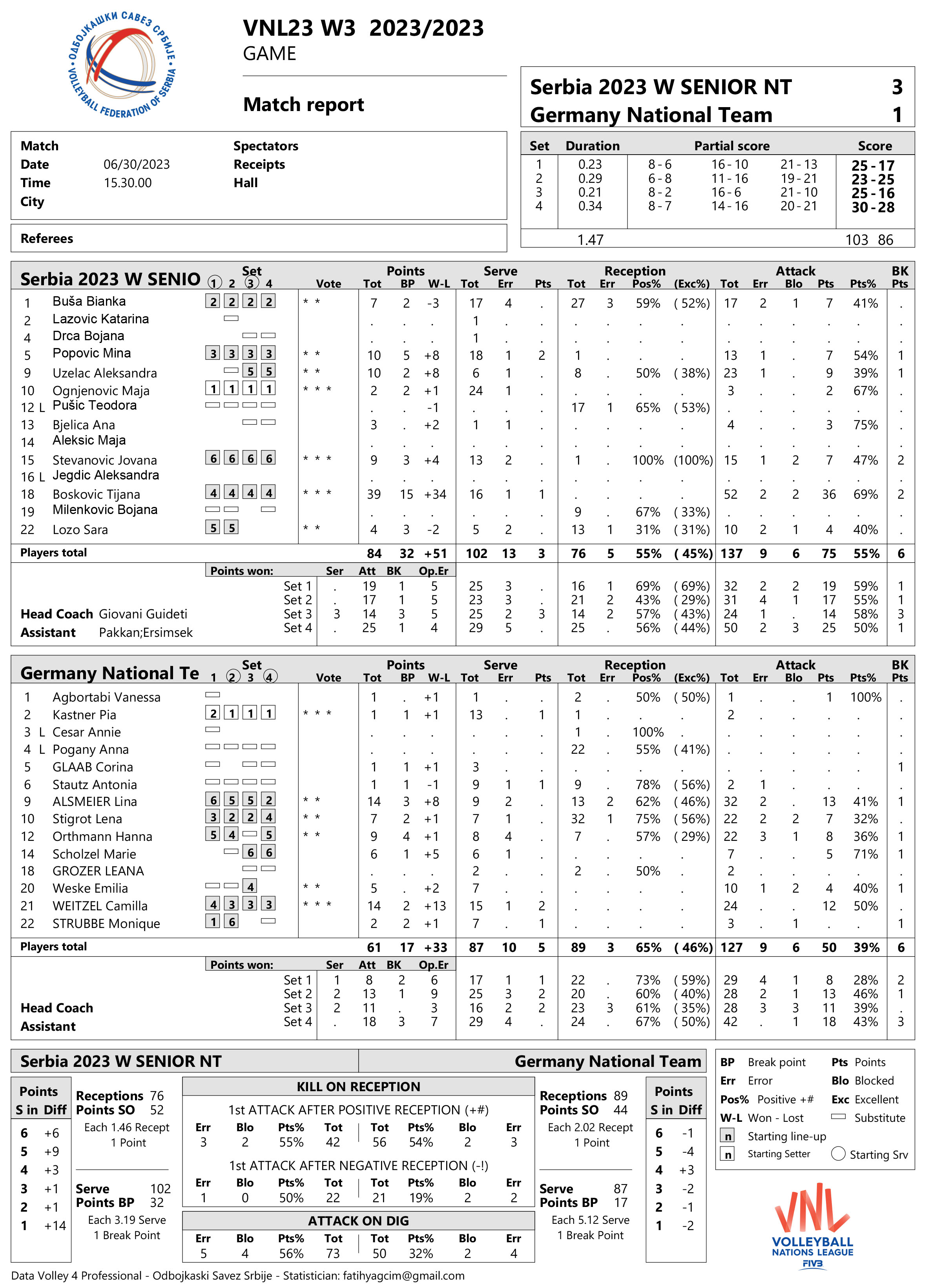 SRBIJA – NEMAČKA 3:1 (25:17, 23:25, 25:16, 30:28)