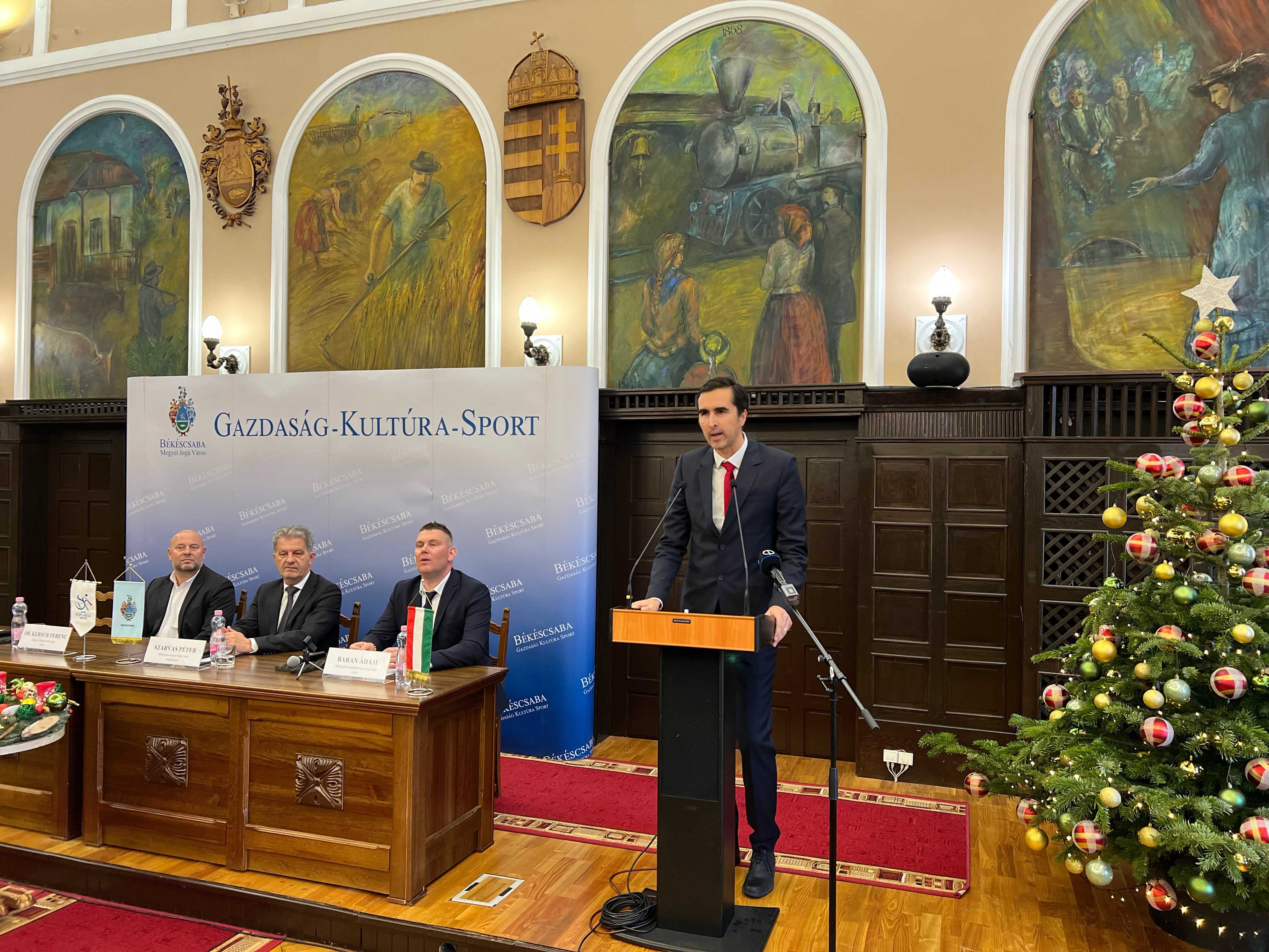 Drugog dana posete delegacije OSS, Peter Sarvaš, gradonačelnik Bekeščabe, priredio je prijem u Gradskoj kući u Bekeščabi, na kojoj se prisutnima obratio Đula Mešter, predsednik OSS.