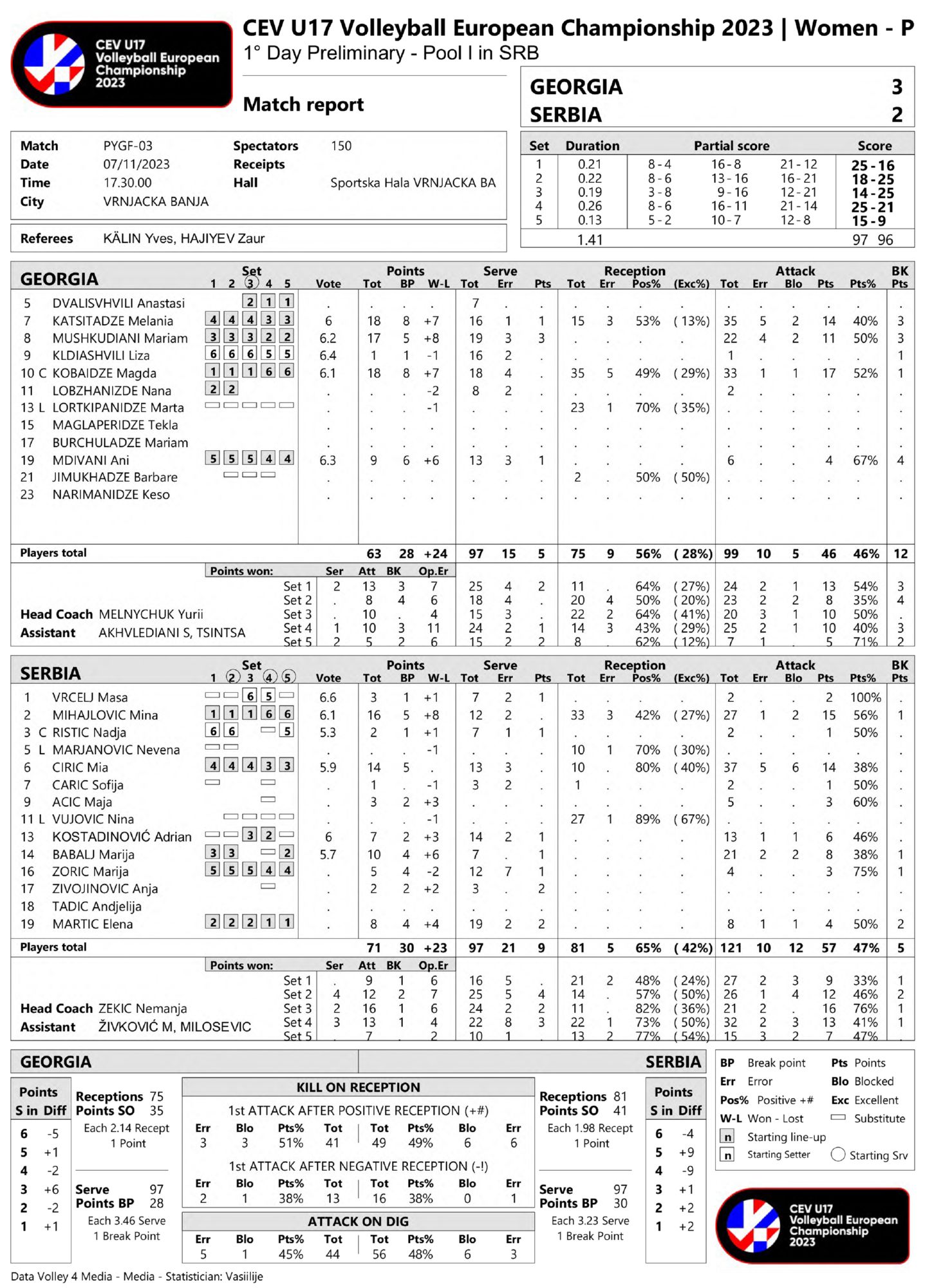 SRBIJA – GRUZIJA 2:3 (16:25, 25:18, 25:14, 21:25, 9:15)