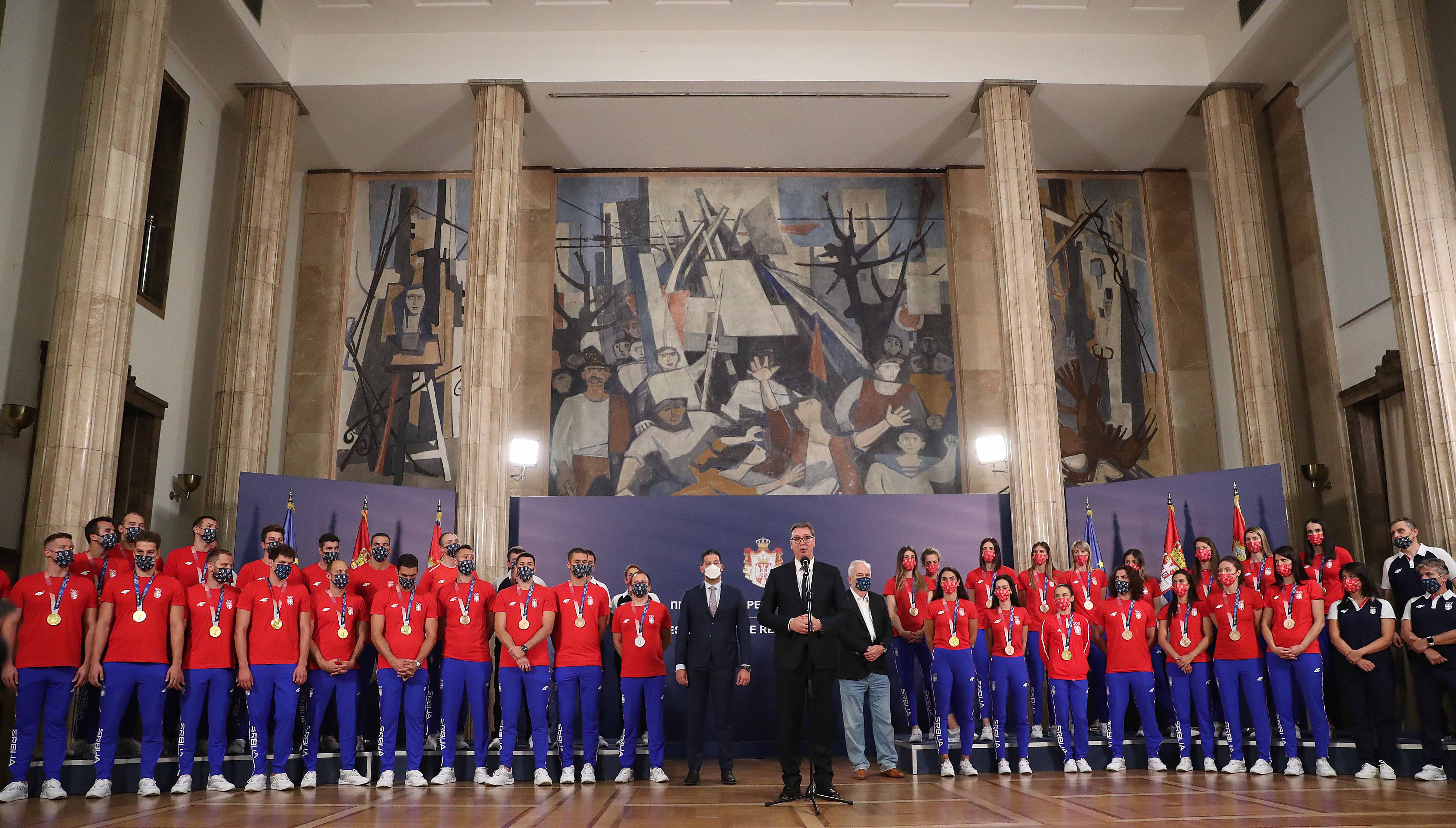 Aleksandar Vučić, predsednik Srbije, priredio je večeras prijem za sve osvajače medalja na XXXII Olimpijskim igrama u Tokiju. Prijemu je prisustvovala i ženska seniorska reprezentacija Srbije, aktuelni svetski i dvostruki uzastopni evropski prvak i osvajač bronzane medalje na XXXII Olimpijskim igrama u Tokiju, kao i Zoran Gajić, predsednik OSS i Ivan Knežević, generalni sekretar OSS.