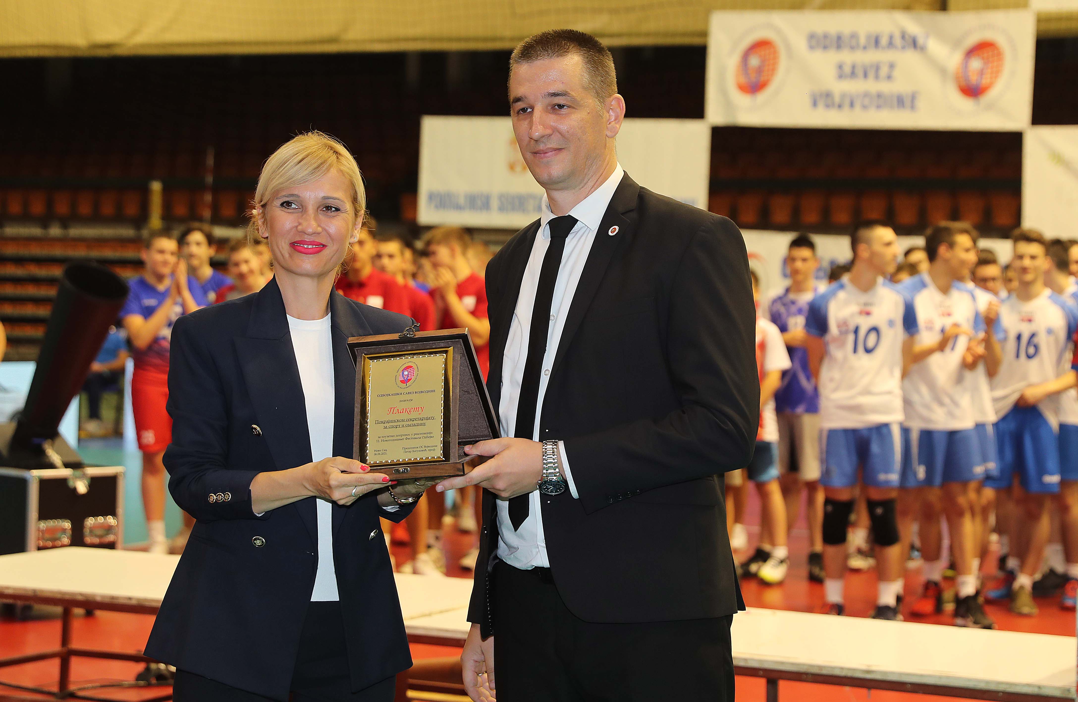 Petar Bogunović, predsednik OSV predao je Mariju Đuranu, pomoćniku ministra za sport u Ministarstvu porodice, omladine i sporta u Vladi Republike Srpske, specijalnu plaketu OSV za veliki doprinos razvoju i unapređenju odbojke.